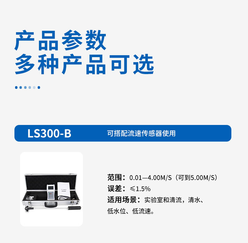 【产品简介】便携式流速仪产品介绍:LS300-B型便携式流速仪(简称便携式流速仪)是专门为水文站、厂矿、环保监测站、农田排灌、水文地质调查等部门在野外进行明渠流速流量测量而研制的。LS300-···