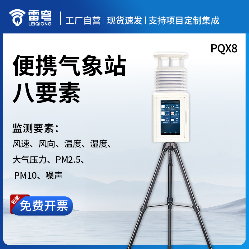 PQX8移动式一体化气象站是一款高度集成、低功耗、可快速安装、便于野外监测使用的高精度自动气象观测设备。