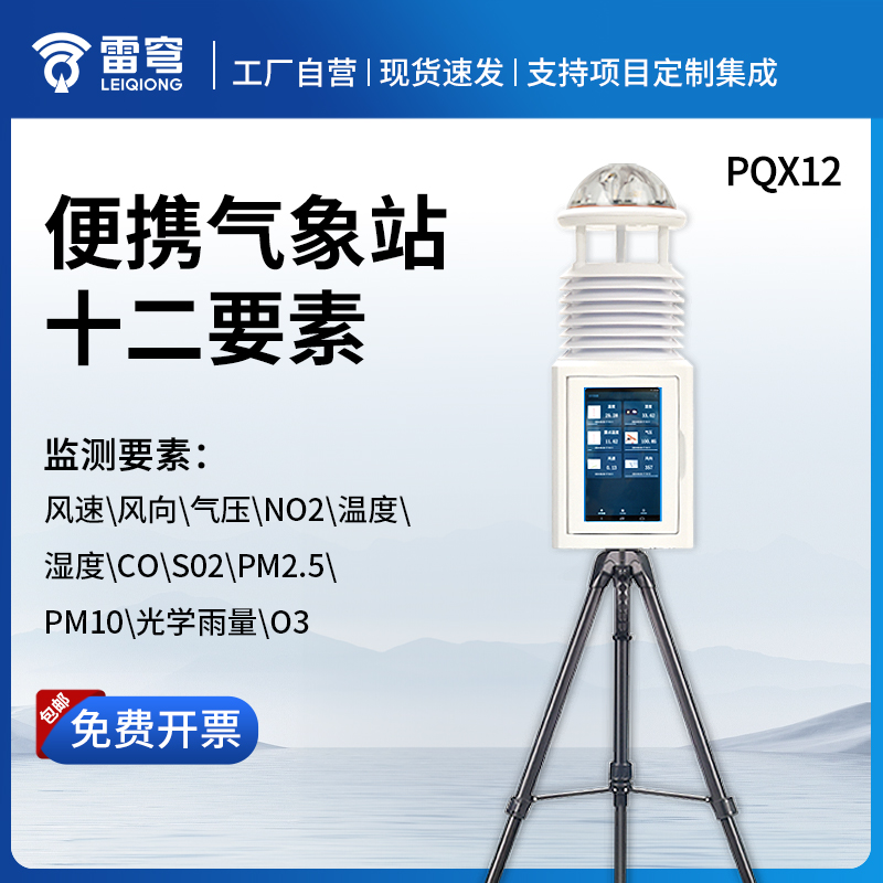 PQX12便携式气象站是一款高度集成、低功耗、可快速安装、便于野外监测使用的高精度自动气象观测设备。