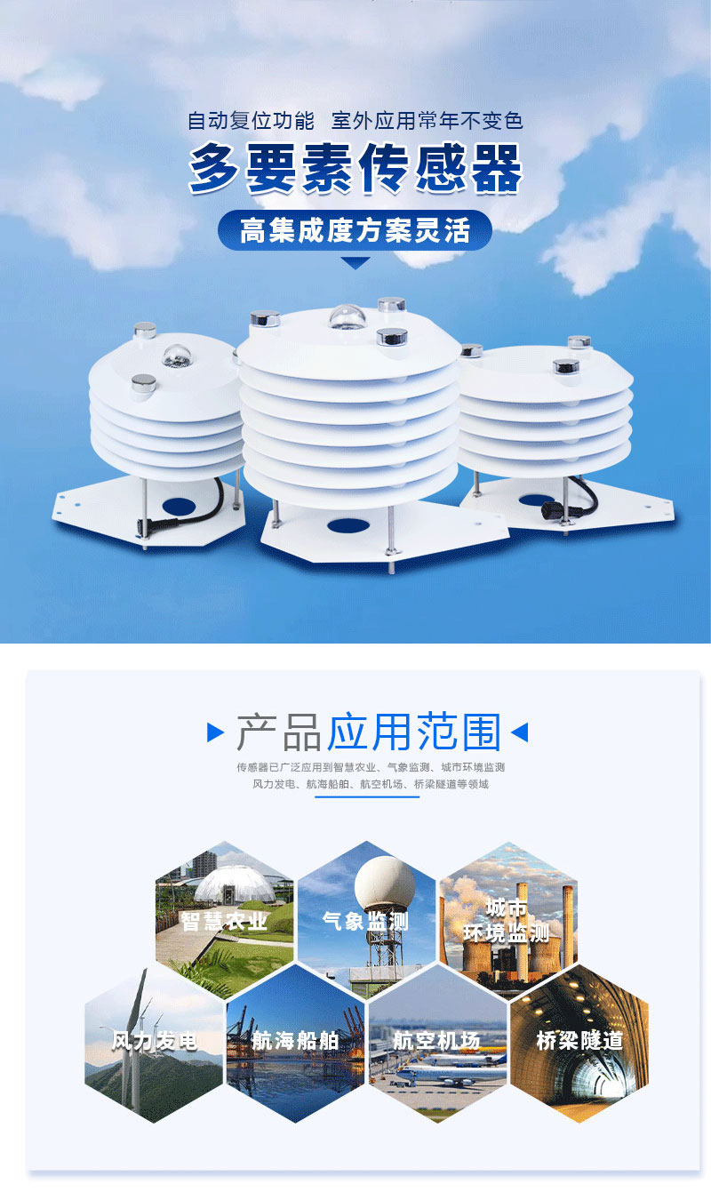 【产品简介】一、六要素传感器产品简介山东雷穹电子科技有限公司作为专业研发生产气象传感器的企业,一直致力于气象传感器和气象环境解决方案推广应用。具有完整的生产链、实力雄厚的技术团队和全面的营销团···