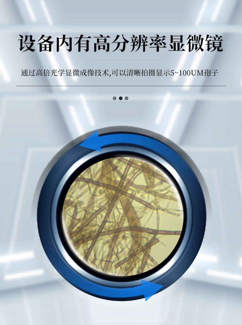 5.设备内有高分辨率显微镜,可以清晰拍摄显示5~100um孢子。