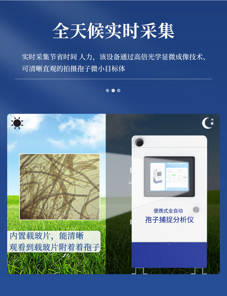【产品简介】一、孢子捕捉系统产品简介该设备通过高倍光学显微成像技术、精度限位技术、自动智能化聚焦融合技术、物联网传输控制技术等技术手段,拍摄孢子微小目标体,并实时将图片上传到指定农业云平台。平···