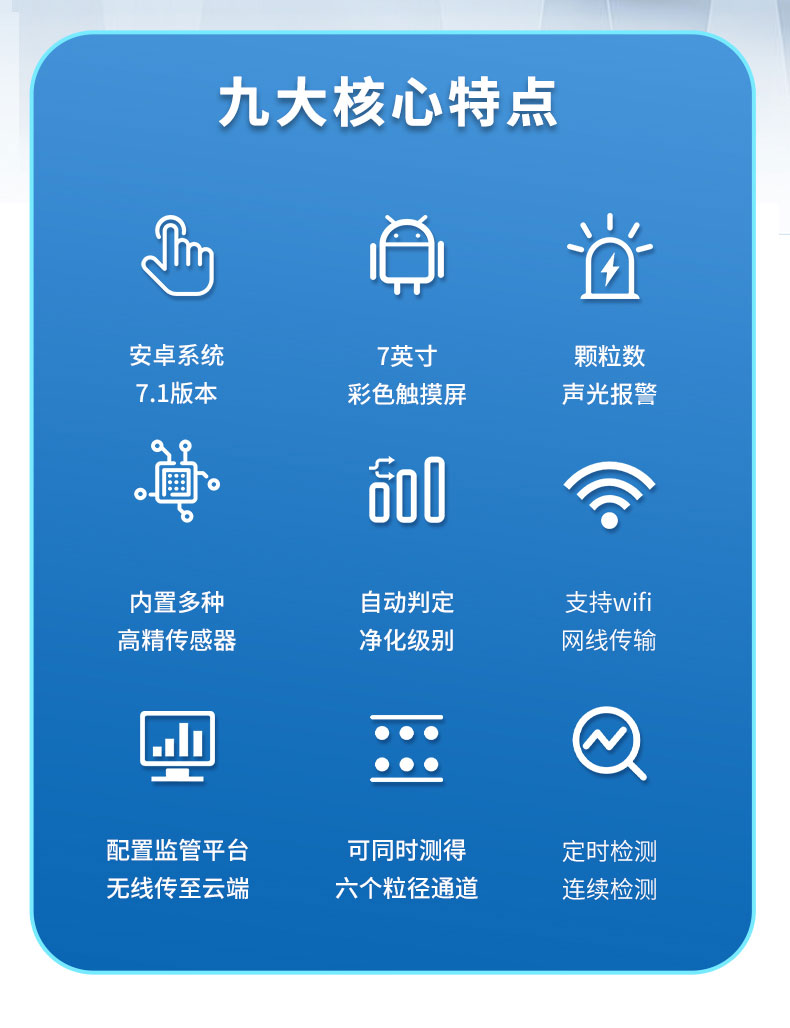 5、依照净化级别划分和规定,自动判定净化级别,使用便利。