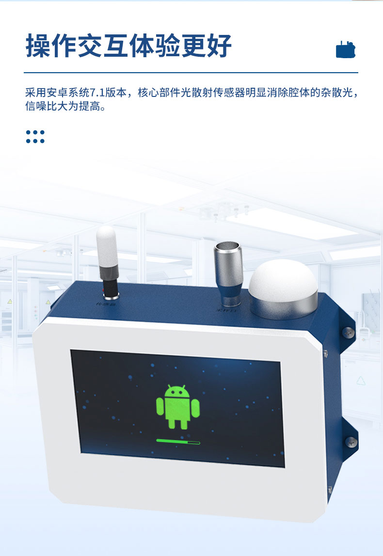 4、核心部件光散射传感器明显消除腔体的杂散光,信噪比大为提高。从而使测量更准确更可靠。