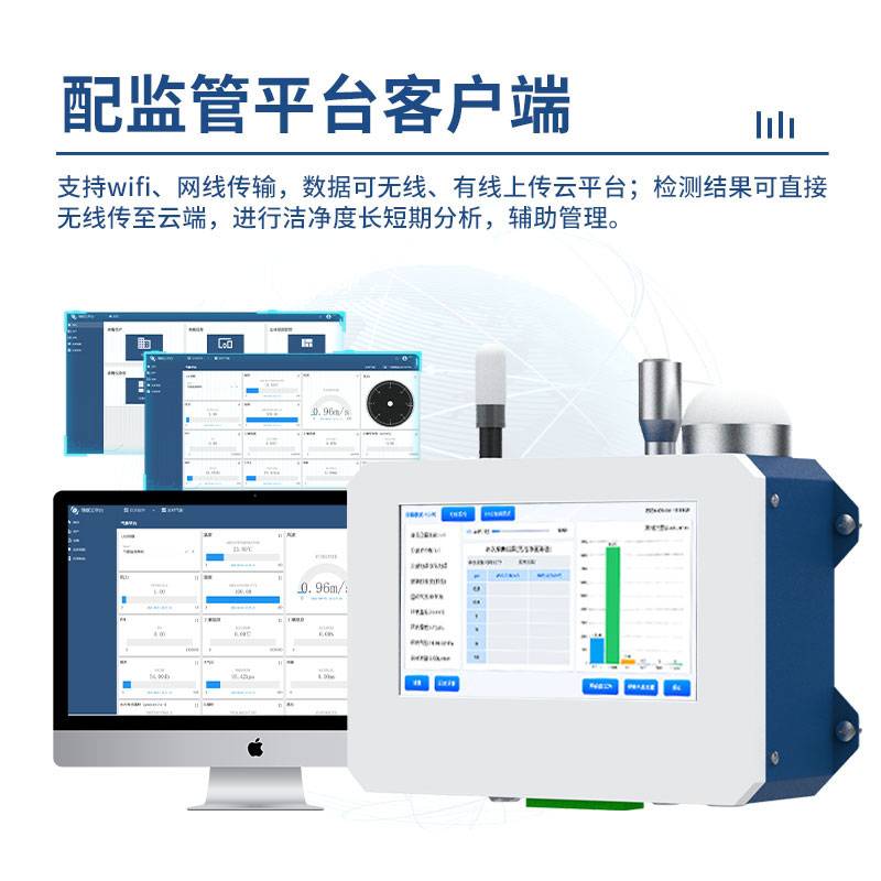 8、配监管平台客户端,检测结果可直接无线传至云端,进行洁净度长短期分析,辅助管理。