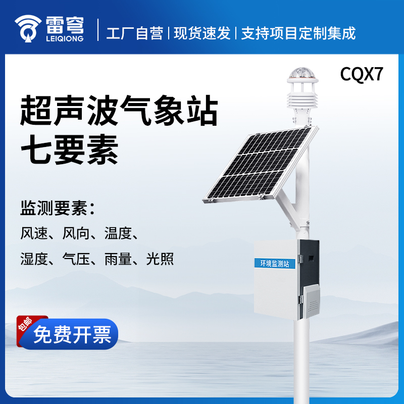 CQX7七要素一体式气象站是一款高度集成、低功耗、可快速安装、便于野外监测使用的高精度自动气象观测设备。