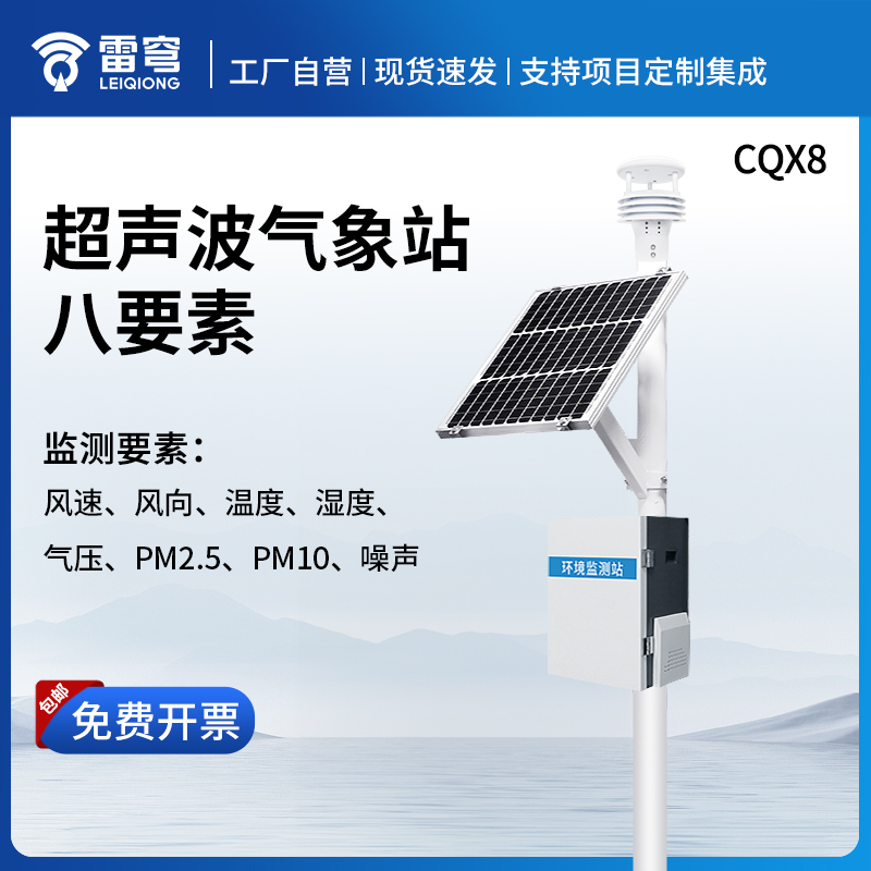 该设备创新性的采用八要素一体式传感器,可对风速、风向、温度、湿度、气压、pm2.5、pm10、噪声等气象要素进行实时观测,可实现户外气象参数24小时连续在线监测,