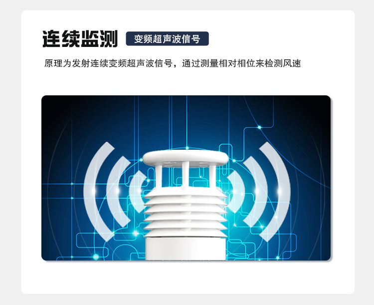 2、原理为发射连续变频超声波信号,通过测量相对相位来检测风速