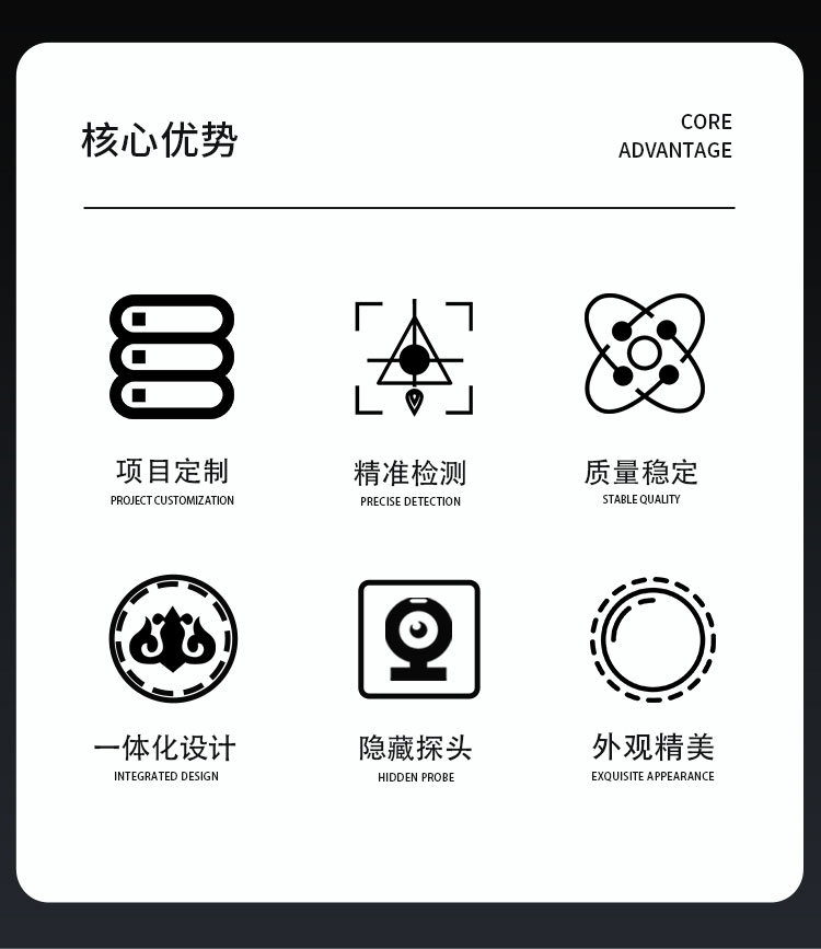 1、顶盖隐藏式超声波探头,避免雨雪堆积的干扰,避免自然风遮挡