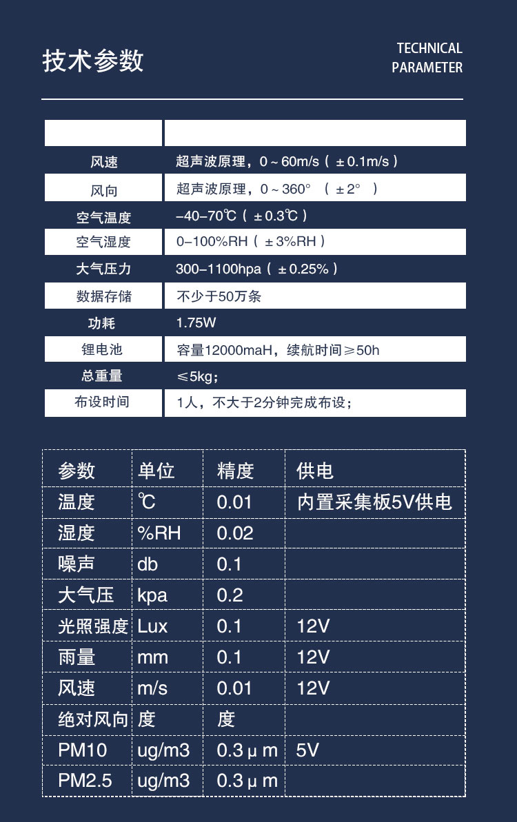 1、风速:超声波原理,0~60m/s(±0.1m/s),可测真实风速