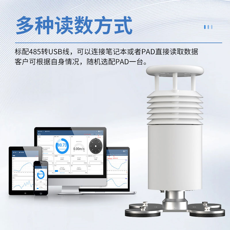 标配485转USB线,可以连接笔记本或者pad直接读取数据。客户可根据自身情况,随机选配pad一台。