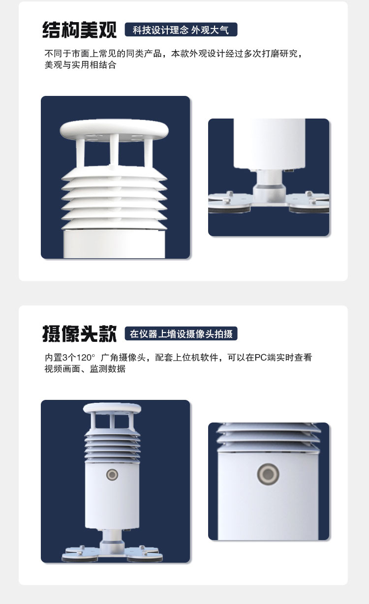 该设备采用五要素一体式传感器,可对风速、风向、空气温度、湿度、大气压力等气象要素进行实时观测,传感器外壳采用进口ABS材质,更有效对抗盐雾等环境,防护等级达到IP65以上。