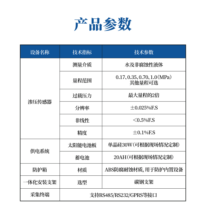 | 采集终端 | 支持RS485/RS232/GPRS等接口 | |