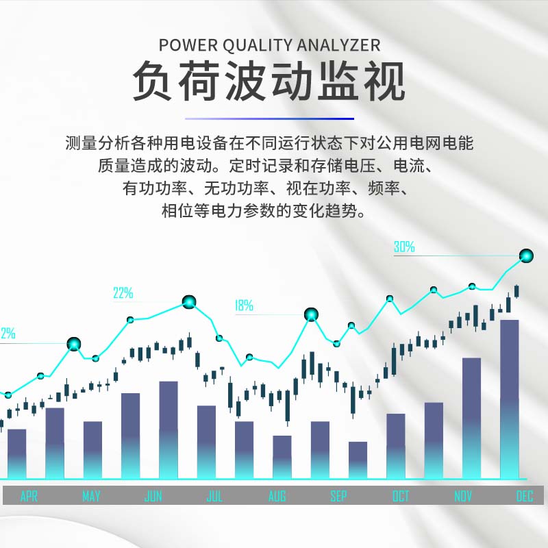 9.负荷波动监视:测量分析各种用电设备在不同运行状态下对公用电网电能质量造成的波动。定时记录和存储电压、电流、有功功率、无功功率、视在功率、频率、相位等电力参数的变化趋势。