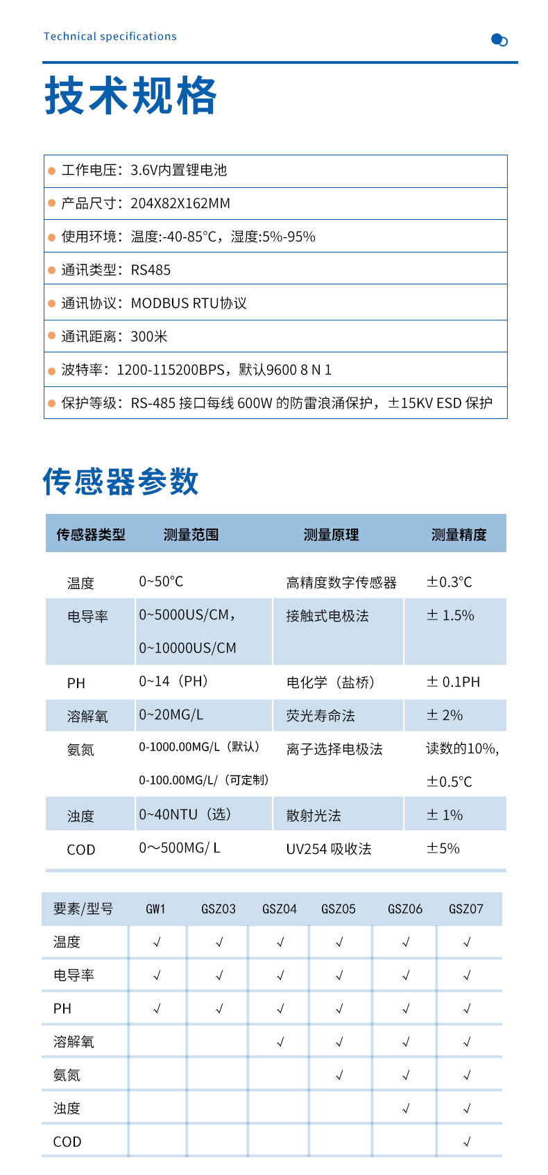 三、排水管网采集系统规格参数