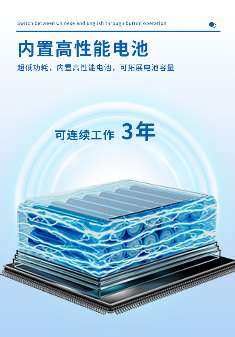 1、采用内置3.6V 152AH锂电池,保证连续工作3年。