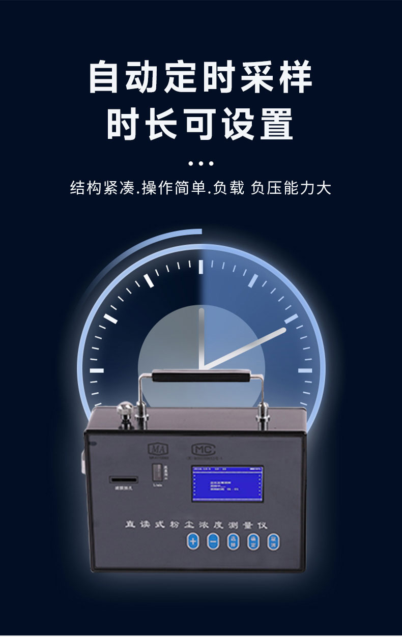 该仪器结构紧凑,操做简单、负载、负压能力大,自动定时采样、流量稳定、全中文液晶显示、便于携带等特点。
