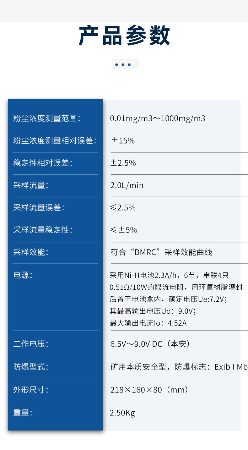 二、防爆粉尘检测仪技术指标