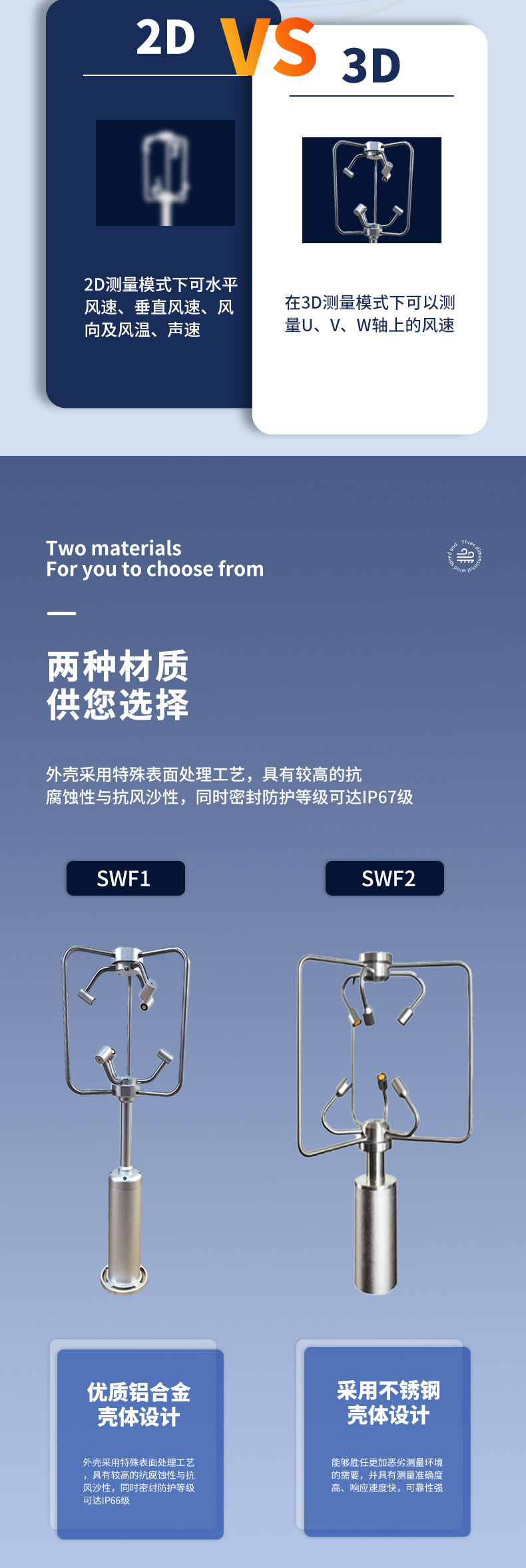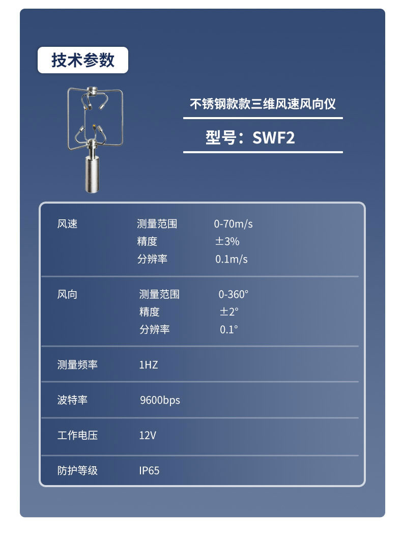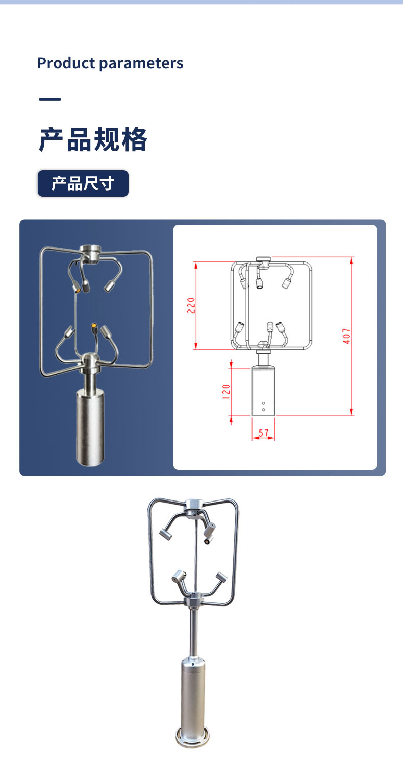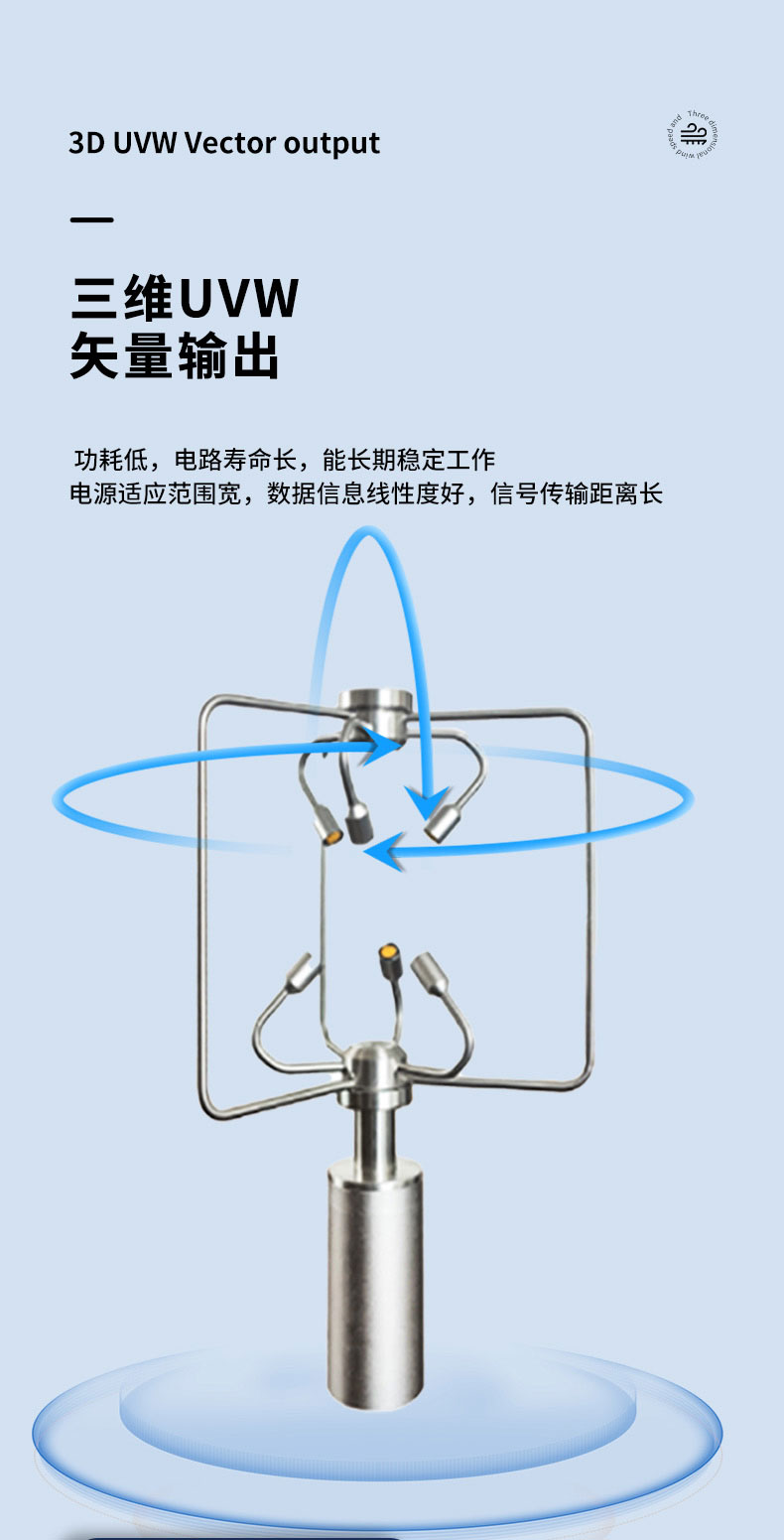 【产品简介】一、不锈钢款三维风速仪产品概述不锈钢款三维风速仪是一种利用超声波测量气体流速的设备。它通过向气体介质中发射超声波,并测量超声波在介质中的传播速度,从而计算出气体流速。这种仪器具有非···