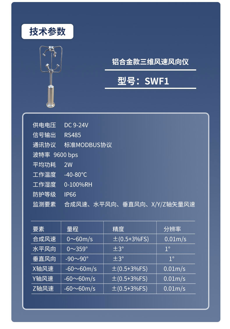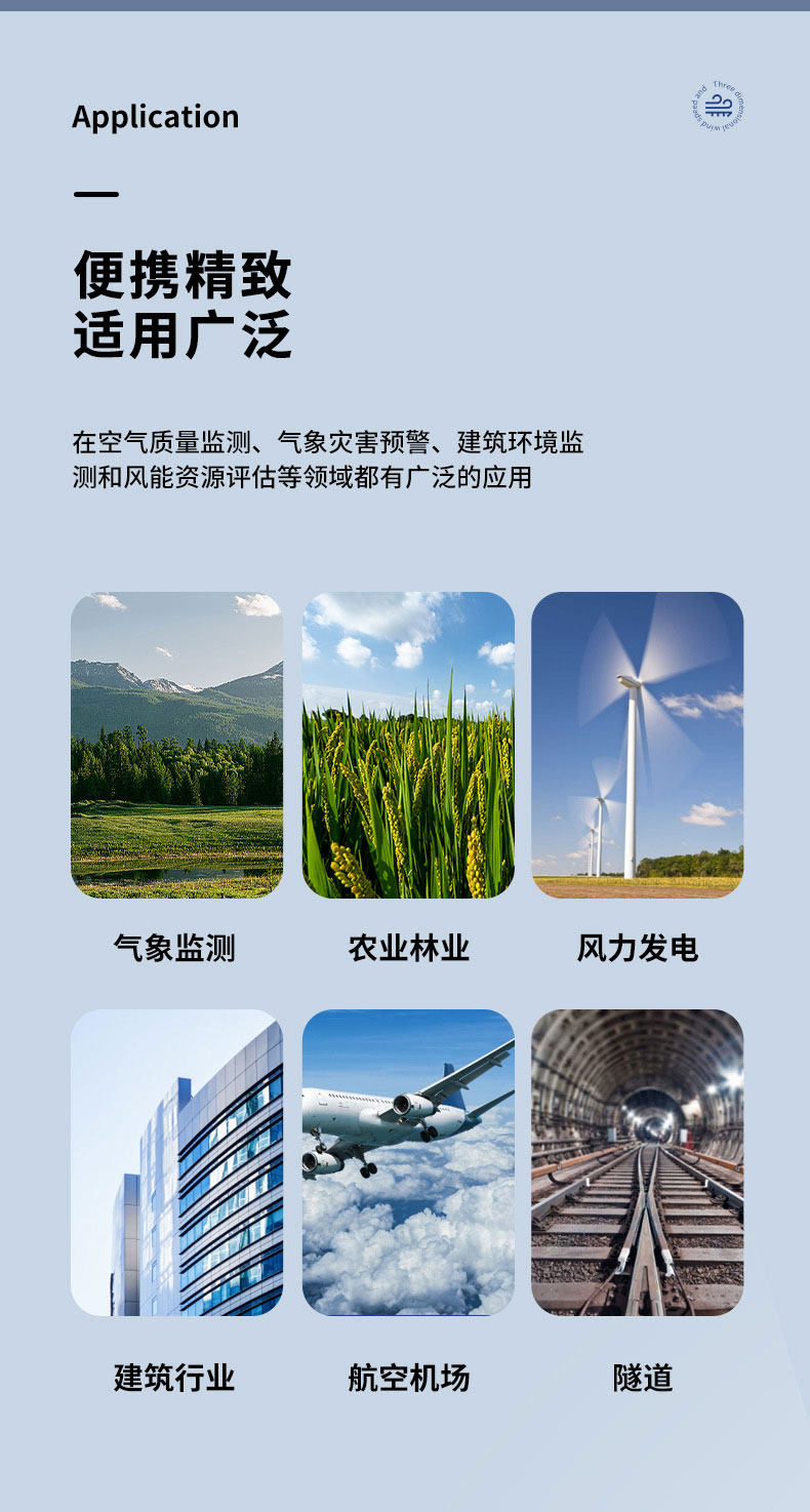 三维超声波风速仪在空气质量监测、气象灾害预警、建筑环境监测和风能资源评估等领域都有广泛的应用。通过准确测量风速和风向,为相关领域的科学研究、环境管理和工程决策提供了重要的数据支持。