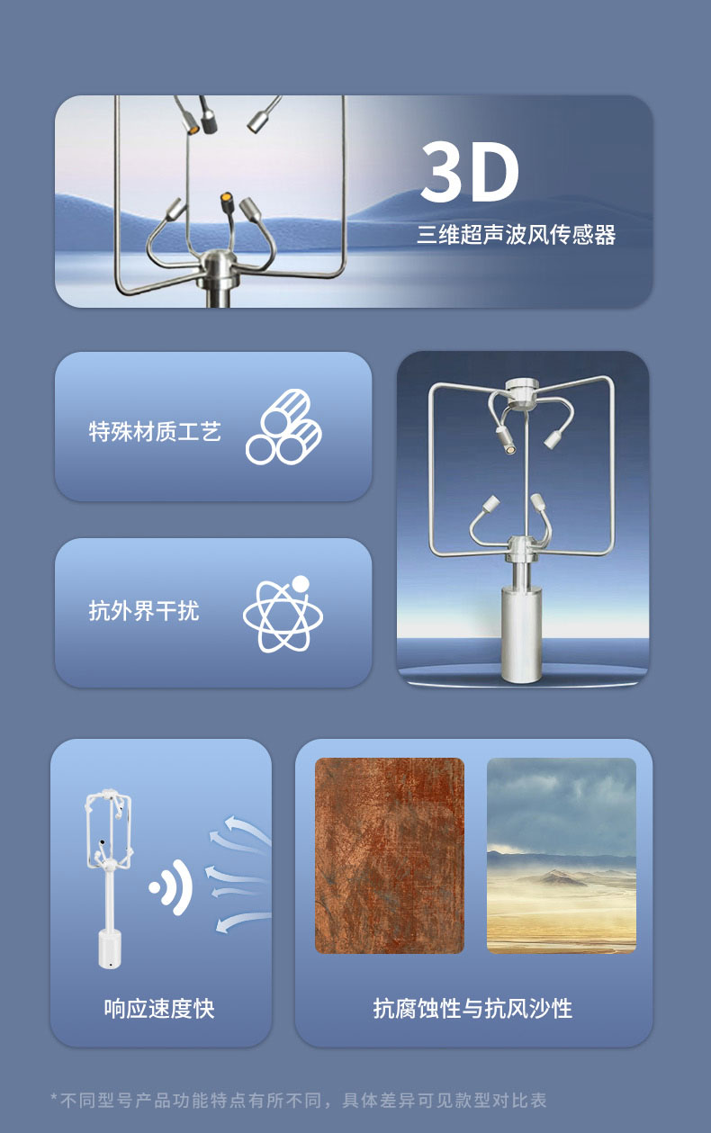 不锈钢款三维风速仪外壳采用不锈钢材料,能够胜任更加恶劣测量环境的需要,并具有测量准确度高、响应速度快,可靠性强,体积小,重量轻等特点。可广泛适用于气象、环保、能源等领域的风速测量场所。