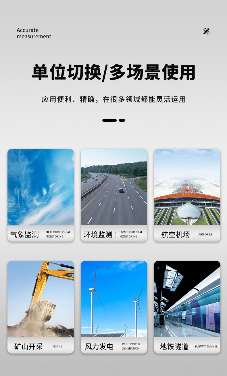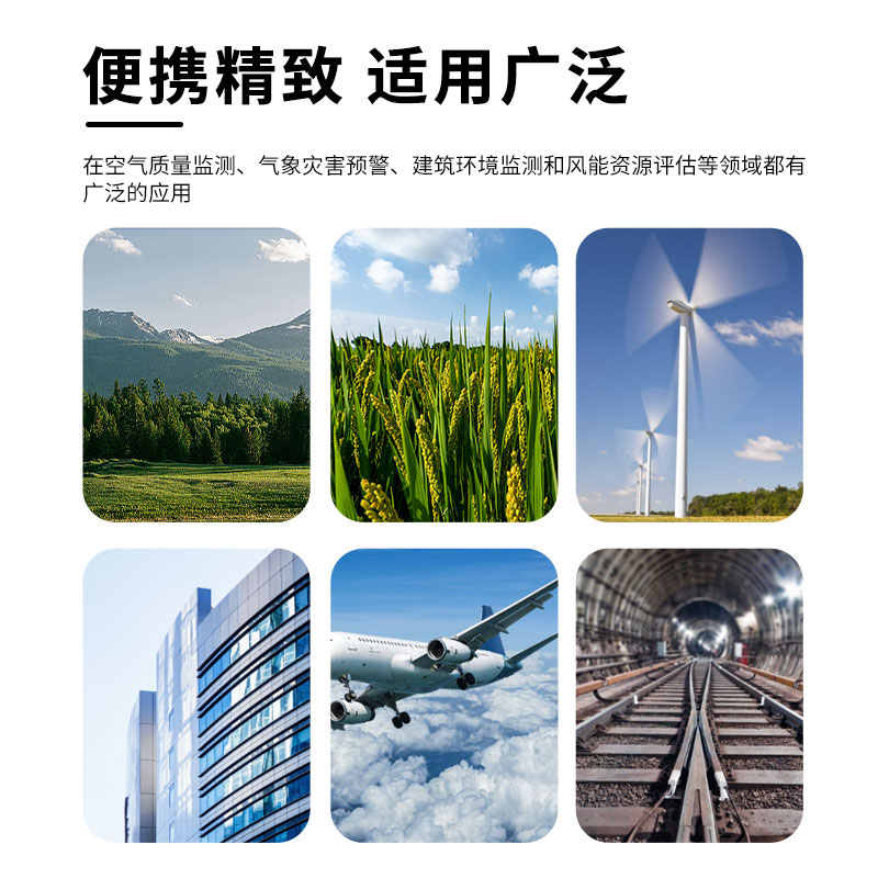广泛应用于城市环境监测、民用市场、风力发电、气象监测、船舶航海及钻井作业平台、高速铁路公路网、航空机场环境监测、地铁、隧道与矿山开采等领域。