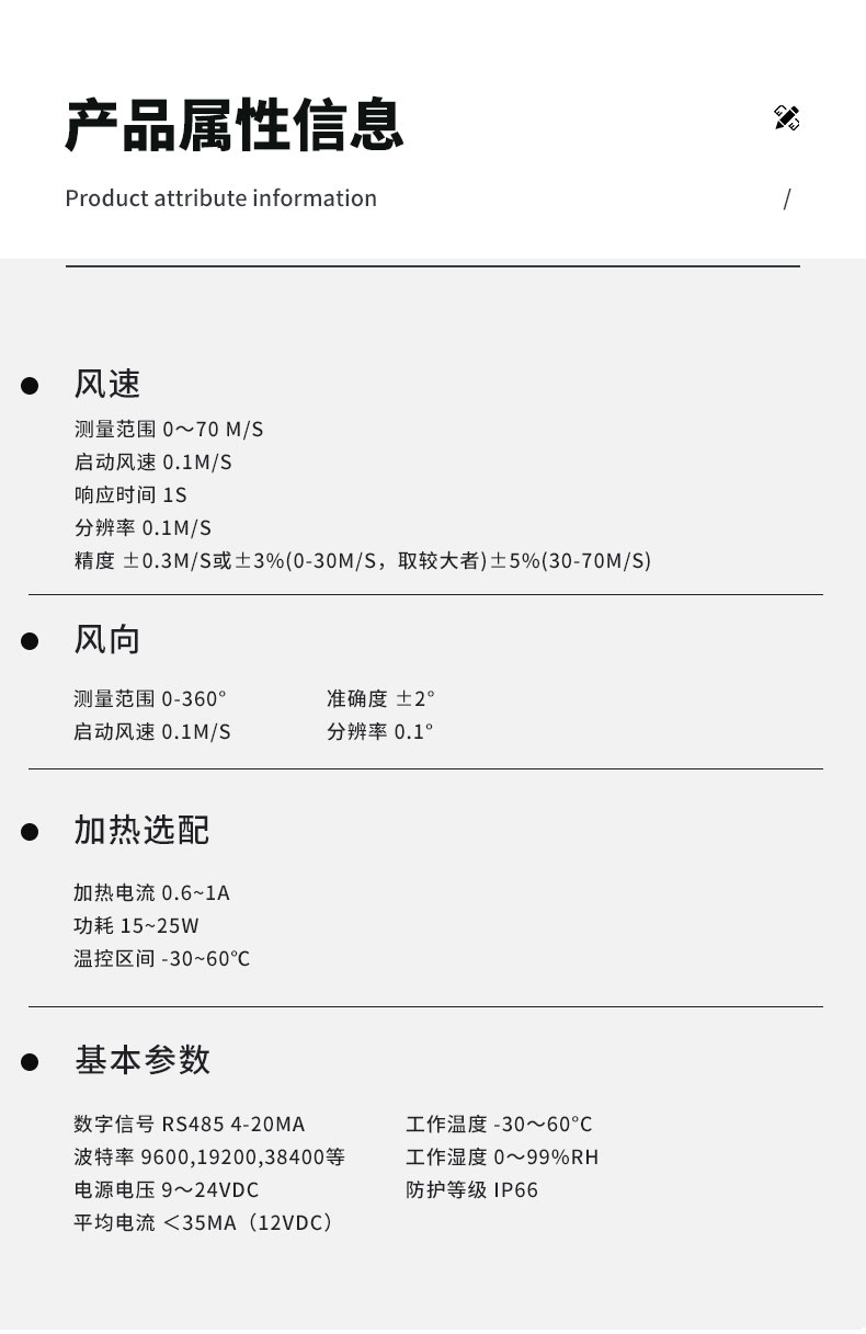 | 风速 | 测量范围 | 0~70 m/s |
