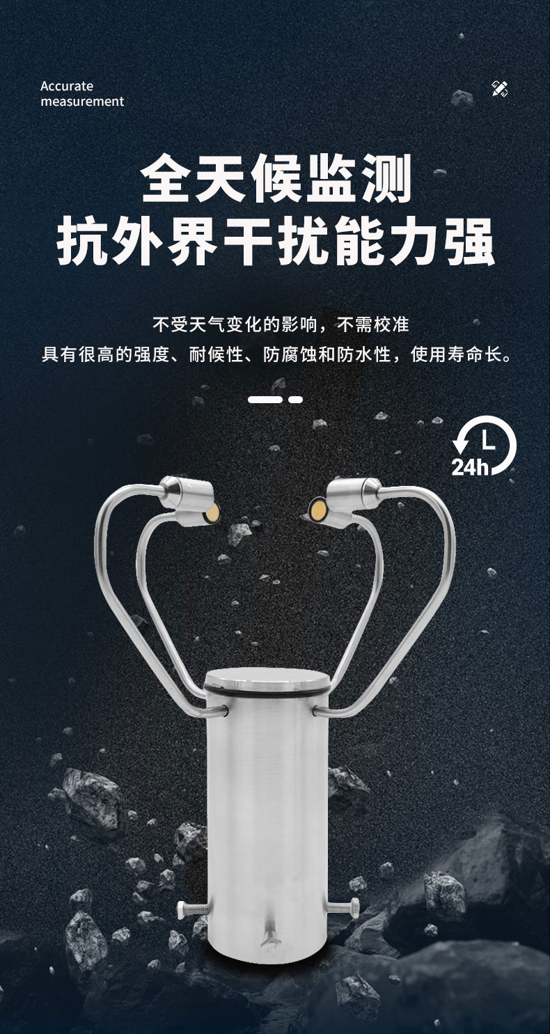 3.测量精度高,量程宽,稳定性能好,低功耗,抗外界干扰能力强,可连续工作,不受天气变化的影响,不需校准。
