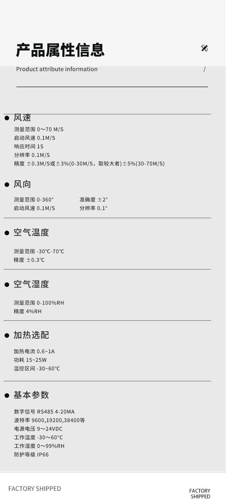 四、二维五要素气象传感器技术参数