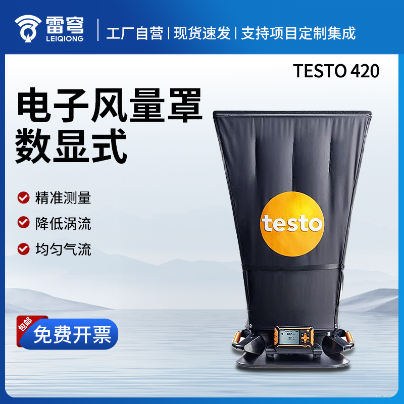 风量罩可有效减少测量误差。内置气流整流栅可有效降低涡流,均匀气流,从而实现风量在80~3,500 m3/h之间精准测量。