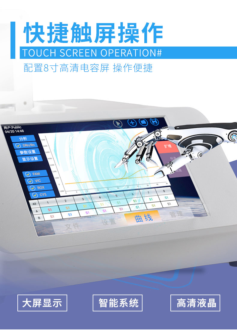 双通道16孔非洲猪瘟检测仪(实时荧光定量PCR仪支持变温检测)用于运行病毒检测实验,并对实验数据进行分析;仪器既可在实验室内操作,又可用于野外科学实验,配合相应试剂,对取自待检测样本的分析物或其他分析物中的目标核酸进行快速、准确的定性检测。