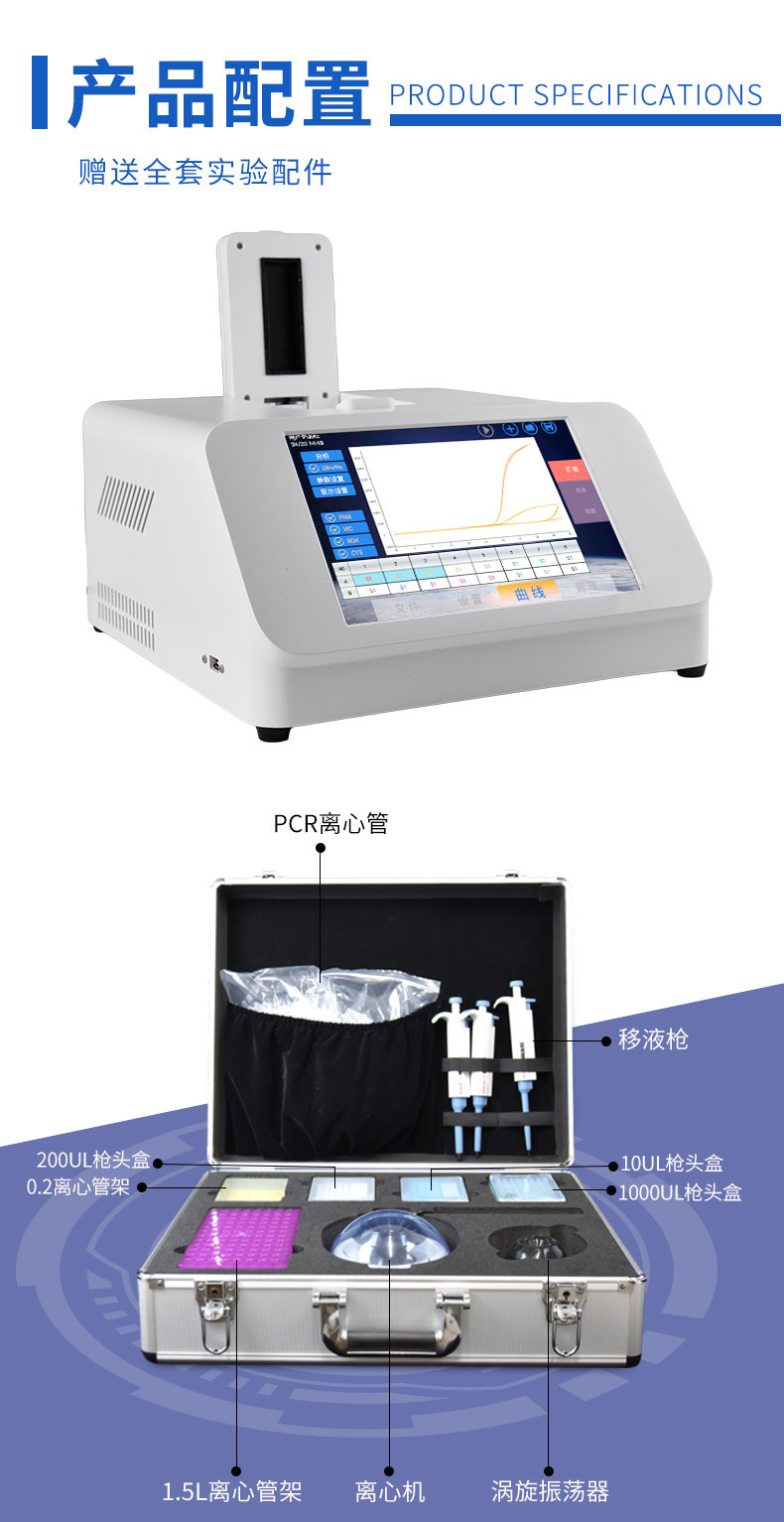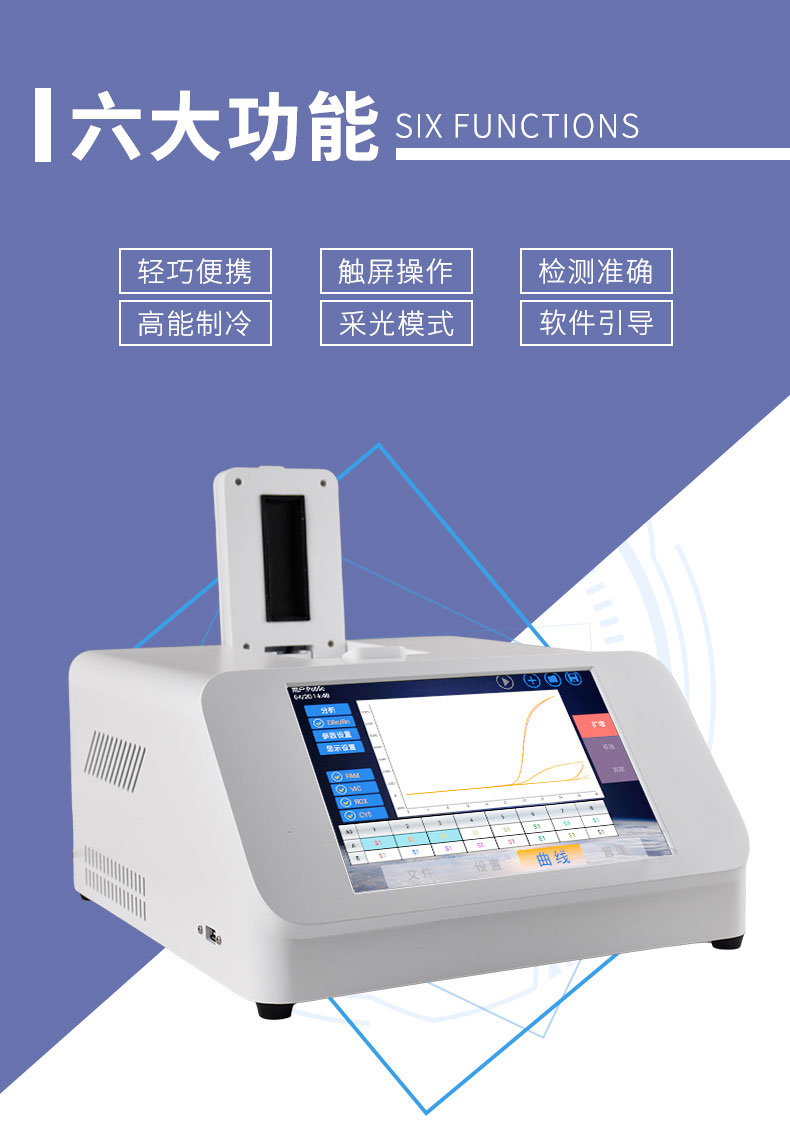非洲猪瘟检测仪配套非洲猪瘟病毒荧光pcr检测试剂盒、非洲猪瘟病毒荧光pcr核酸检测试剂盒均已经获得农业农村部产品批准,可以满足非洲猪瘟核酸现场快速检测需求。可定量快速畜牧类疾病诊断如非洲猪瘟、禽流感、猪瘟、猪蓝耳、伪狂犬等疾病,广泛应用于养殖场、屠宰场、食品加工厂、肉产品深加工企业、农业农村部、畜牧局、检验检疫单位使用。