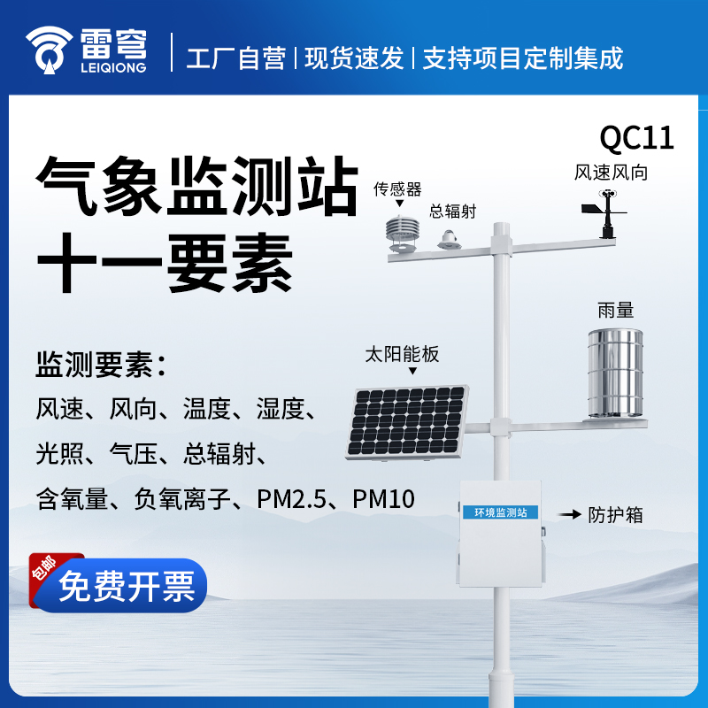 QC11十一要素气象站是一款高度集成、低功耗、可快速安装、便于野外监测使用的高精度气象观测设备。