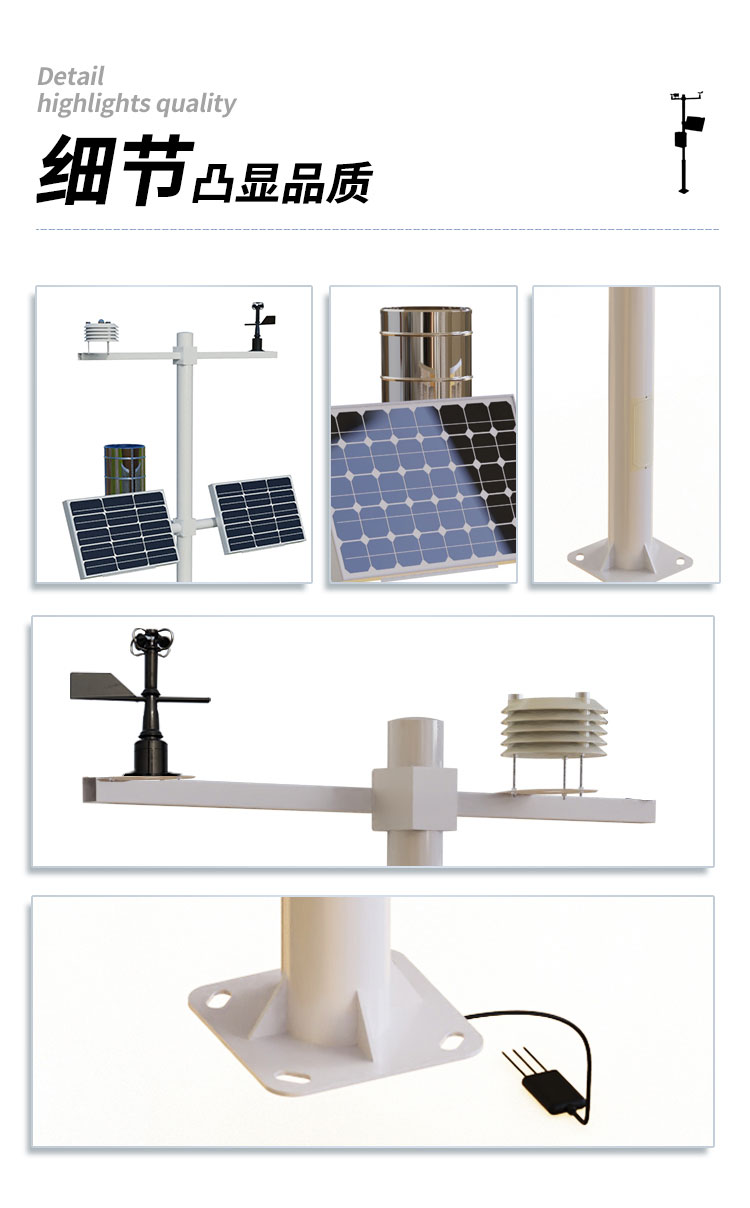 该设备由气象传感器,采集器,太阳能供电系统,立杆支架,云平台五部分组成。免调试,可快速布置,广泛运用于气象、农业、林业、环保、海洋、机场、港口、科学考察、校园教育等领域。