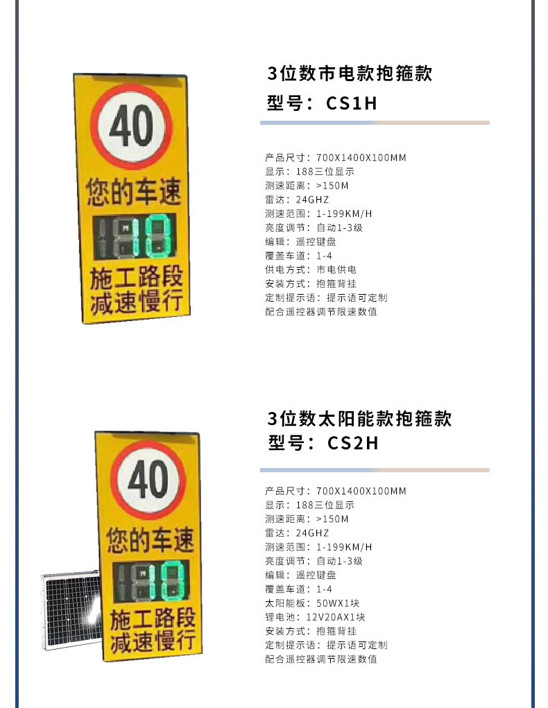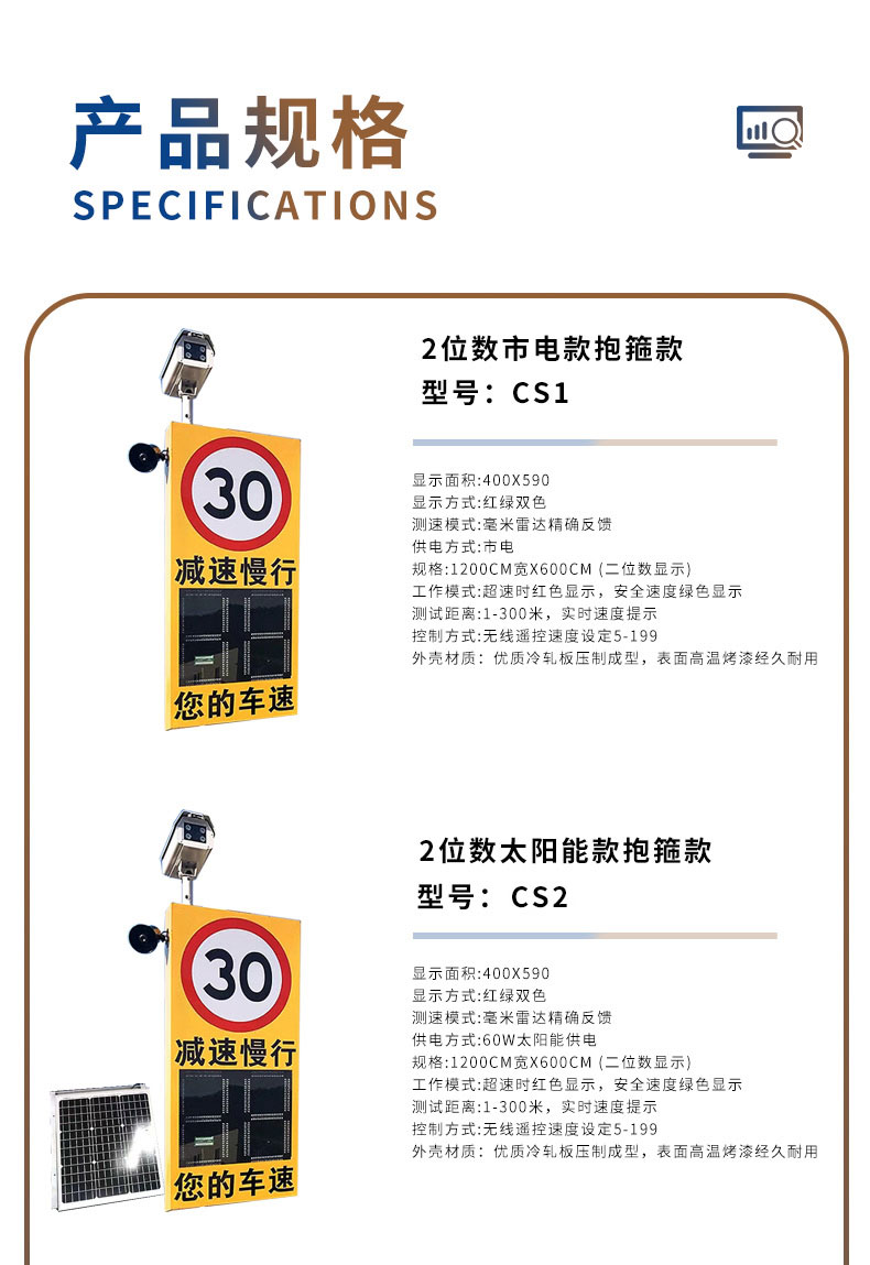 【产品简介】太阳能雷达速度标志产品介绍产品尺寸:700X1400X100mmled屏尺寸:640X480mm摄像机:华为400万像素雷达:24GHZ补光灯:15W测速距离:>150m测速范围:···