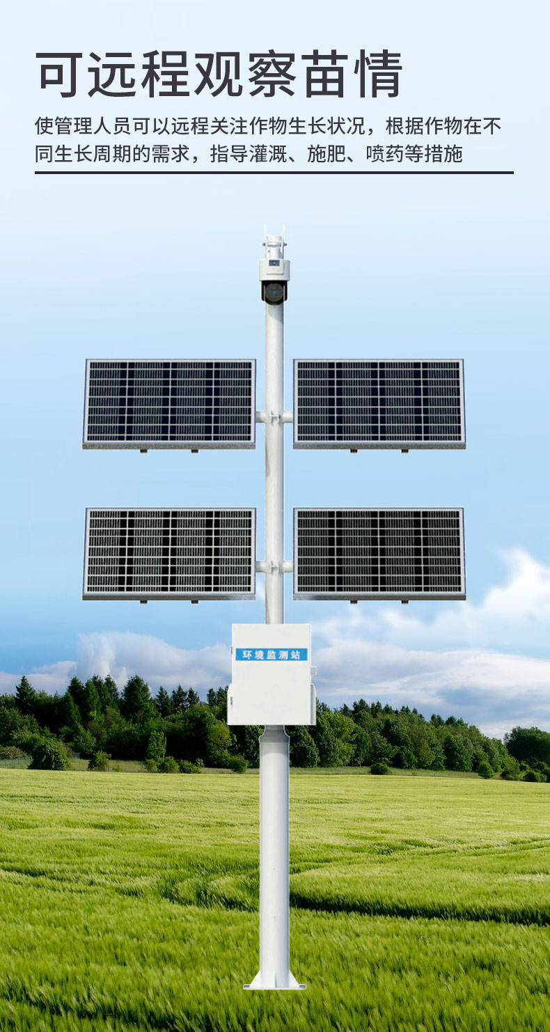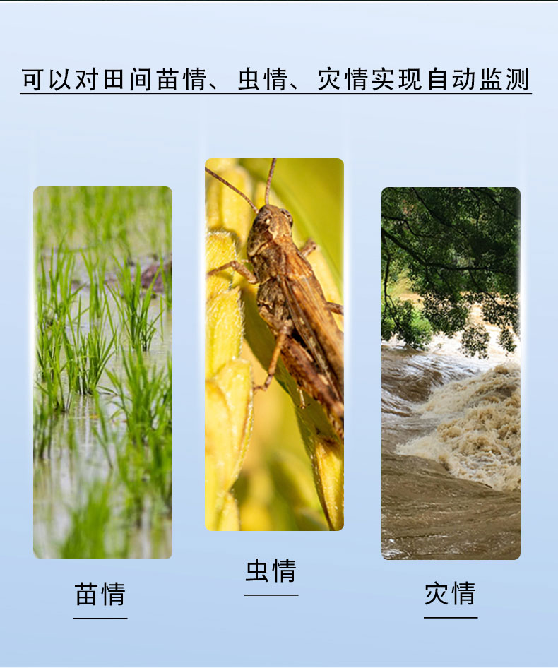 苗情监测设备,是指由自动监测系统对农作物的生长发育状态、病虫害情况以及灾情进行实时视频监控(包括日间图像和夜间的红外图像)。结合气象、墒情等传感器以及虫情预报灯等,可以对田间苗情、虫情、灾情实现自动监测,使管理人员可以远程关注作物生长状况,根据作物在不同生长周期的需求,指导灌溉、施肥、喷药等措施。