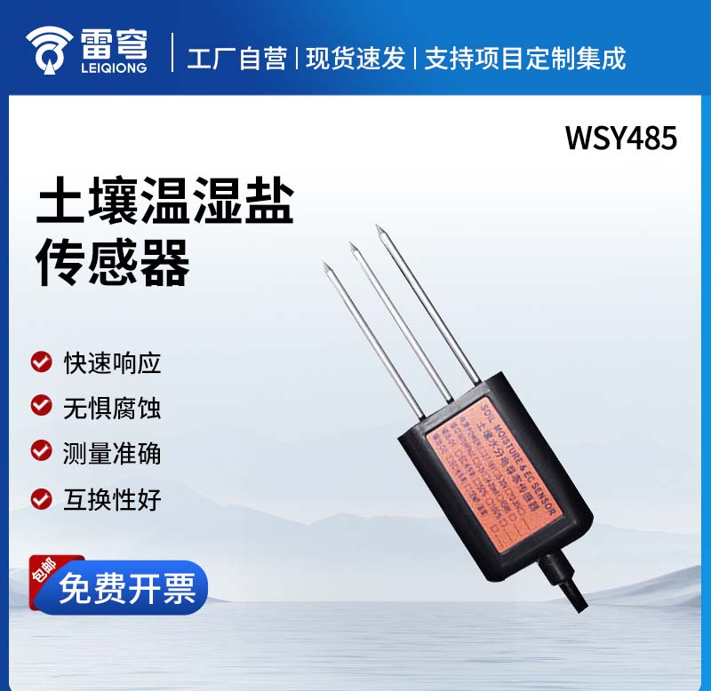 【产品简介】一、探针式土壤温湿盐传感器技术指标1.供电:DC12V2.功耗:小于0.1W3.工作温度:-30~70℃4.通信接口:RS4855.工作电流:8mA DC12V6.最短数据间隔:6···