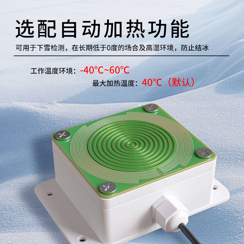 选配自动加热功能,可用于下雪检测,在长期低于0度的场合及高湿环境,防止结冰结。