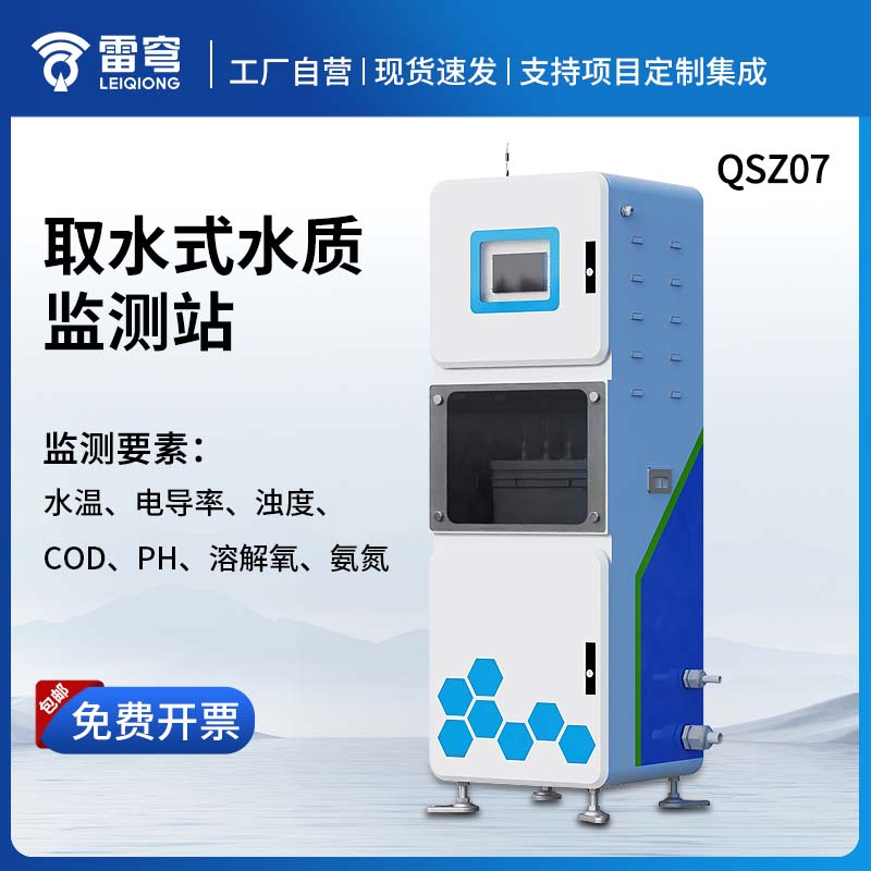 QSZ07取水水质监测站具有自动监测功能,一体化抽取式微型水质自动监测站主要监测项目为:PH、温度、浊度、电导率、溶解氧、COD、氨氮、悬浮物、总氮等。它采用高度集成技术,在一个机柜内实现了自动水质监测功能。