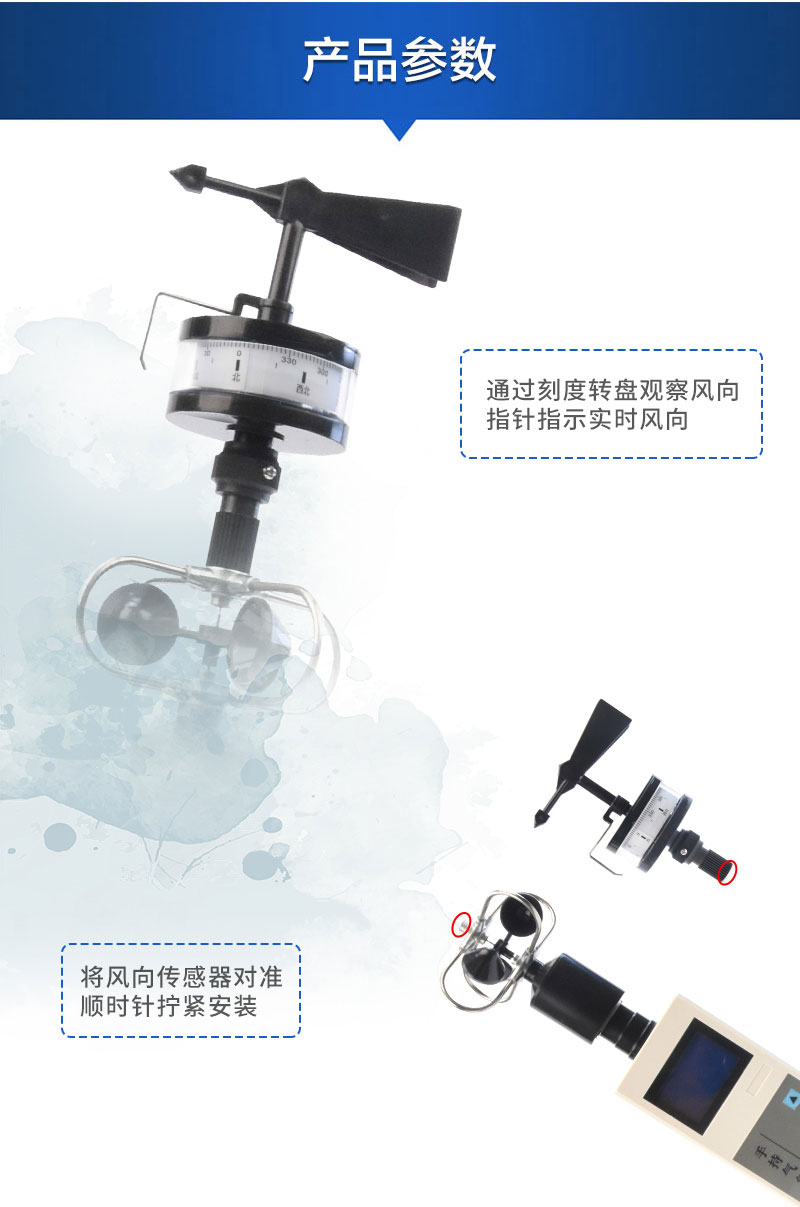 特制的风向刻度盘(16个方位)及指针用来指示实时风向;