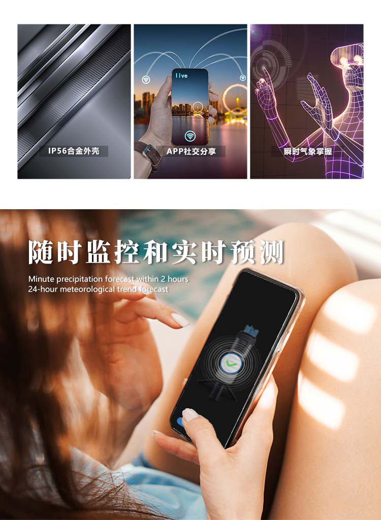 【产品简介】一、智能气象仪产品简介传统气象预报,大多数据较为宽泛、模糊、滞后,智能气象仪能随时精准监测局地天气,实时预测局地气象变化,揭开精准气象的神秘面纱。二、智能气象仪产品特点秒级更新频率···