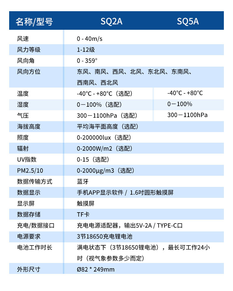 四、超声波手持式气象站技术参数