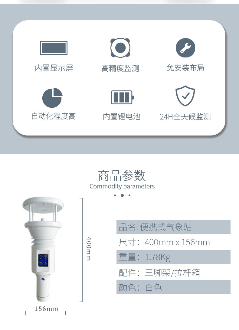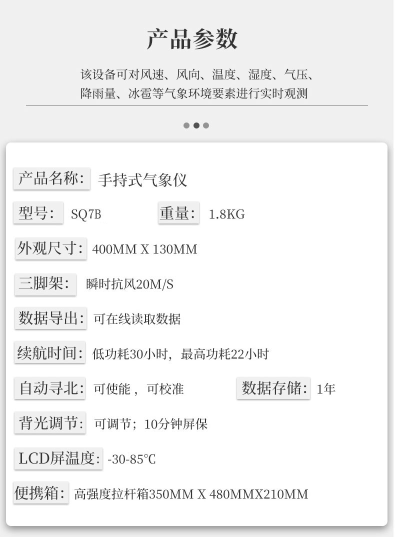 二、棒式全固态手持气象站技术参数
