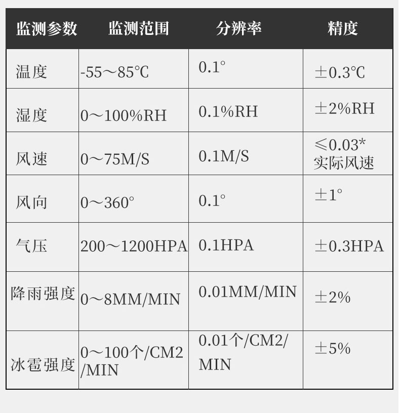 | 2 | 风向 | 0~360° | 0.1° | ±2° | |