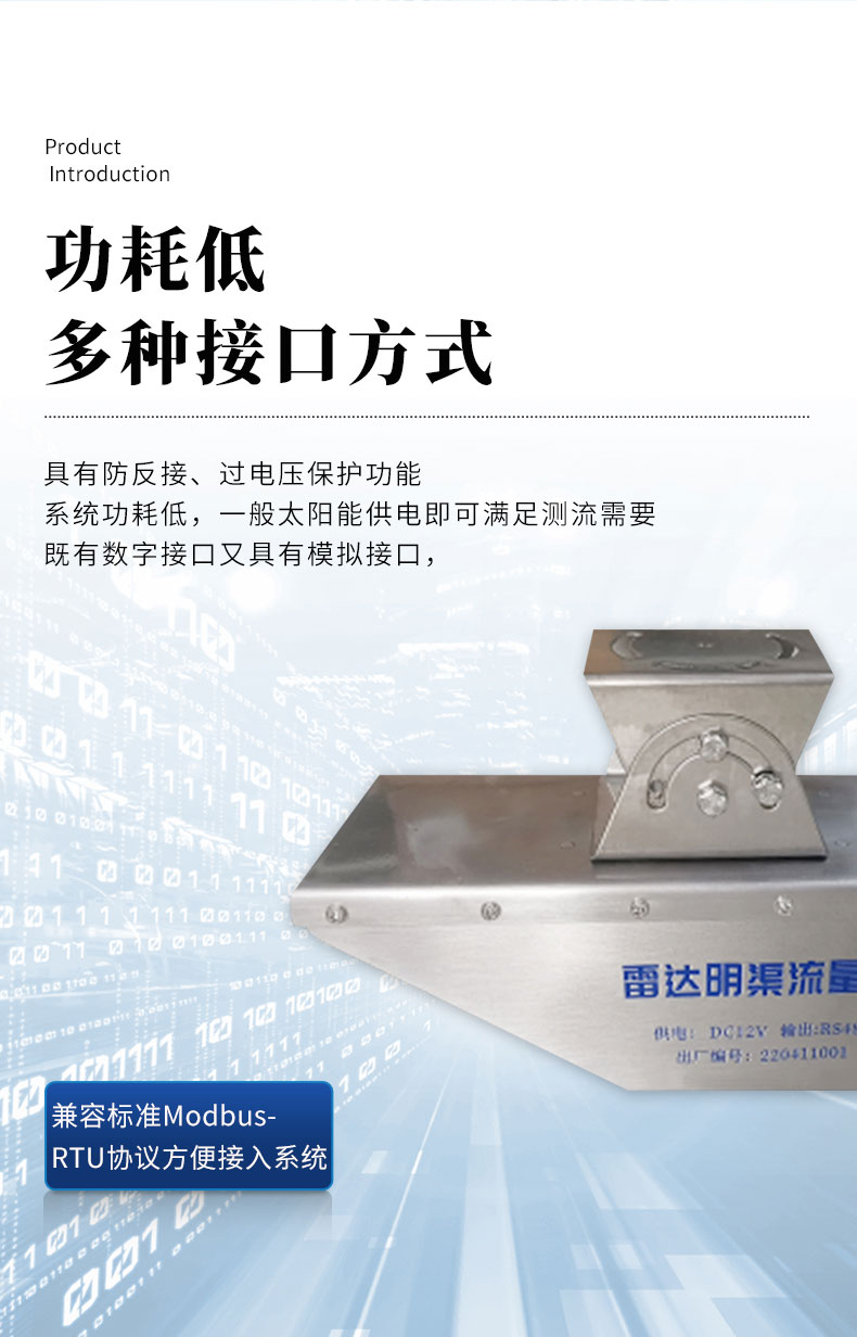 4.系统功耗低,一般太阳能供电即可满足测流需要