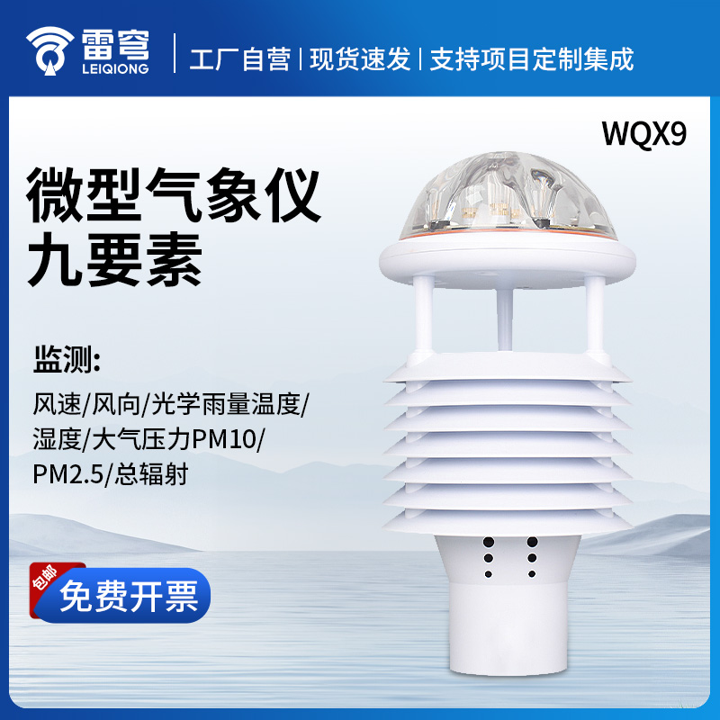 3.风速、风向、温度、湿度、气压、光学雨量、总辐射、PM2.5、PM10九要素一体式(实用新型专利,专利号ZL 2020 2 3215649.5)☆