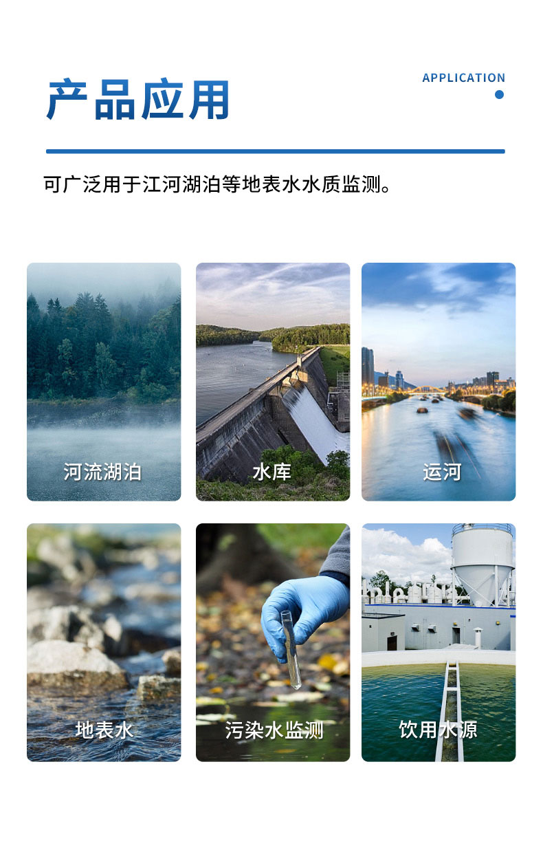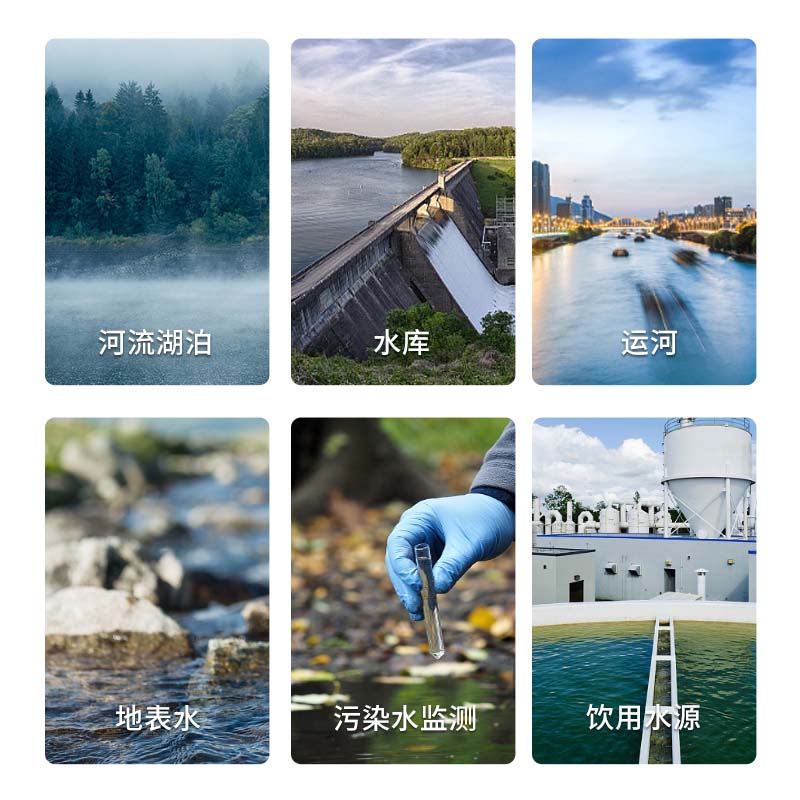 造成地表水富营养化的因素主要为水体中N、P、有机物、HN4-等化学因素,因此监测地表水总磷、总氮、氨氮、化学需氧量、高锰酸盐指数等化学指标已成为一项必要的任务,配合常规五参数(溶解氧、浊度、电导率、温度、pH)同时监测,综合反应水环境指标。