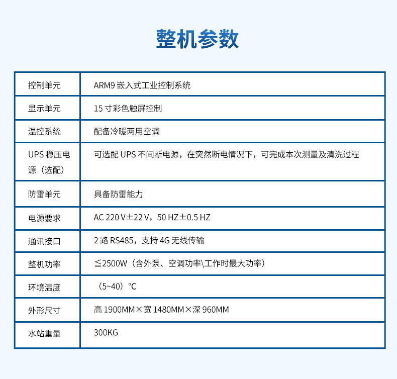 微型水质监测站整机参数: