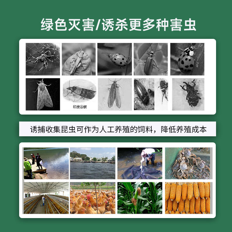 【产品简介】一、便携式性诱测报灯产品简介便携式性诱测报灯利用害虫的趋化性,结合性诱技术、电子控制技术及无线红外载波自动校正技术,实现对虫害发生规律的科学监测。二、便携式性诱测报灯产品特点1、远···