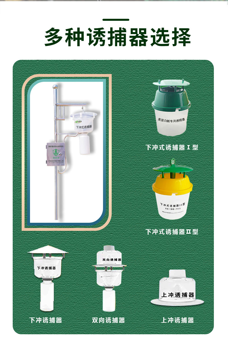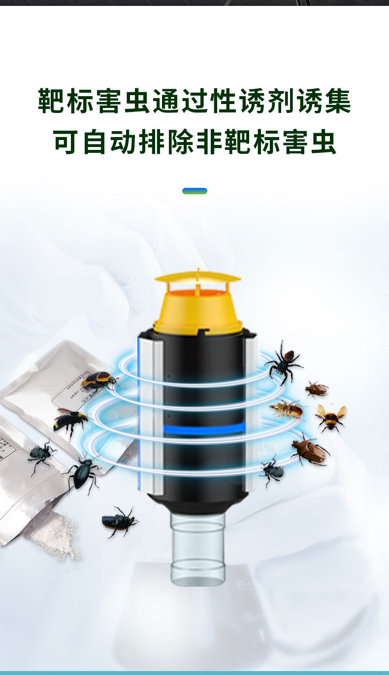 2、靶标害虫通过性诱剂诱集,设备可分为:鳞翅目、鞘翅目等多类靶标害虫自动测报系统
